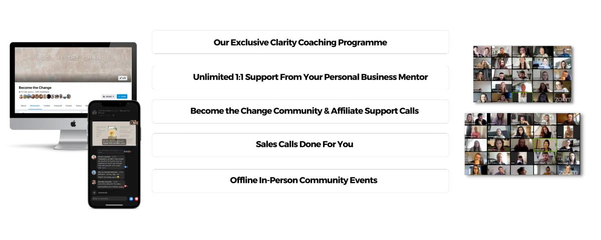 The business opportunity we hold is broken down into two forms. Affiliate & Network Marketing. This involves: 1. Partnering with our chosen partnership becoming an independent distributor, sharing their products & message for them. 2. Optional Personal Coaching & Mentorship to help new business owners to grow.